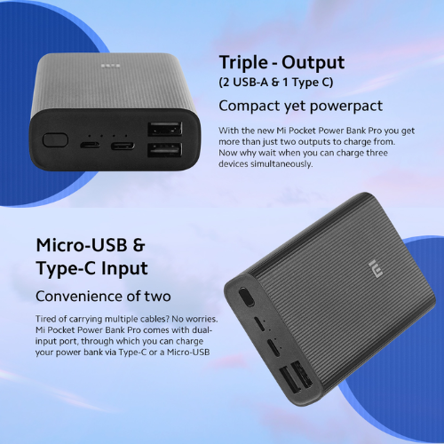 Mi Pocket Power Bank Pro 22.5 W 10000mAh (Black, Lithium-ion, Fast Charging for Mobile, Earbuds, Speaker, Smartwatch, Trimmer, Tablet)