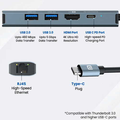 Easen up complicated data transfers with a multiport hub that initiates seamless data transfer. Mport 51 is a 5 in 1 type c multiport adapter that allows for multiple device functioning at any point of time.