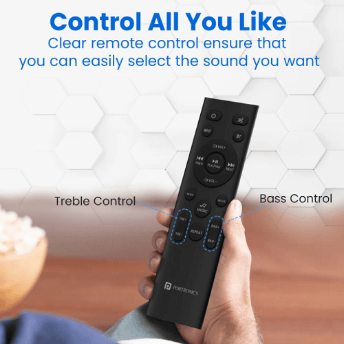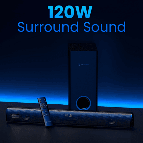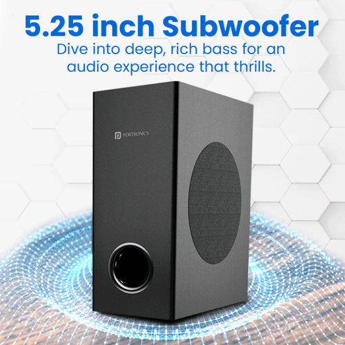 2.1 Channel 120W HD Soundbar: The Portronics Pure Sound 106 bluetooth soundbar is here to take your home theatre experience to a whole new level. With this soundbar, listen to your favorite content, exactly like it was intended.